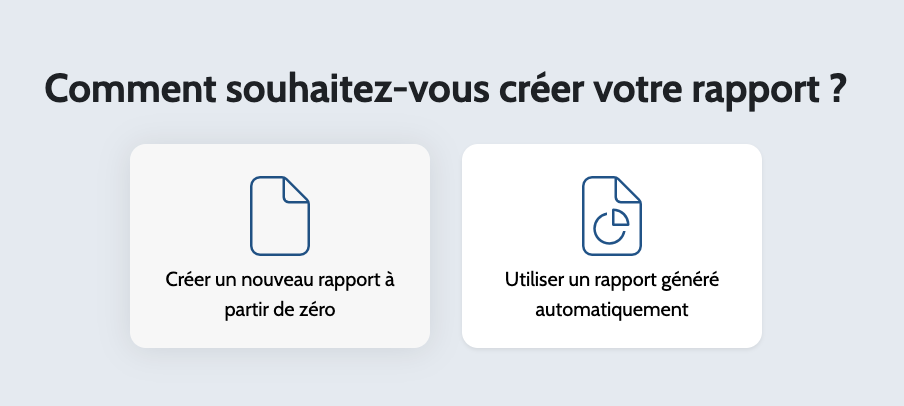 - « Créer un nouveau rapport à partir de zéro » pour un rapport vierge, ou