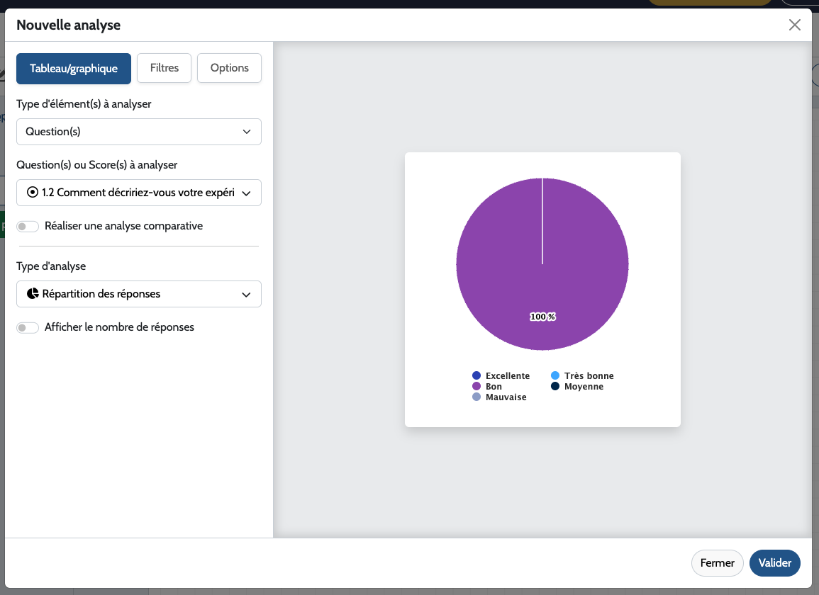 - Analyse comparative : activez-la pour comparer plusieurs éléments (questions, filtres…)