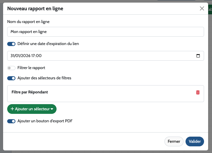 - Le rapport en ligne s’actualise automatiquement avec les nouvelles réponses collectées.